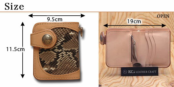 商品の仕様 ●素材 本体:サドルレザー(牛皮革) フラップ:パイソン(ニシキヘビ革) ステッチ:ミシン ステッチ ●サイズ クローズ/タテ=11.5cm ヨコ=9.5cm オープン/タテ=11.5cm ヨコ=19cm