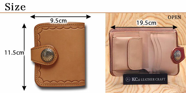 商品の仕様 ●素材 本体:ツーリング レザー(牛皮革) コンチョ:シルバー コンチョ(925銀) ステッチ:ミシン ステッチ ●サイズ クローズ/タテ=11.5cm ヨコ=9.5cm オープン/タテ=11.5cm ヨコ=19.5cm