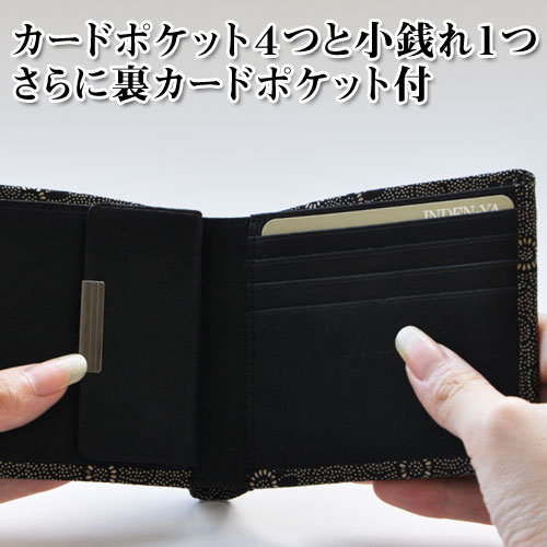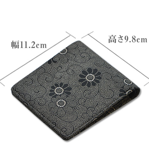 印伝・財布・二つ折財布【印傳屋財布・二つ折り財布メンズ・二つ折り財布レディース・札入れ】2003・黒/白 菊