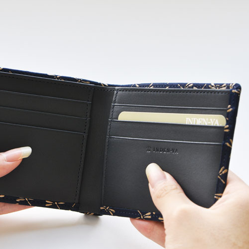 印伝・財布・二つ折財布【印傳屋財布・小銭入れなし・二つ折り財布メンズ・二つ折り財布レディース・札入れ】2005・紺/白 トンボ