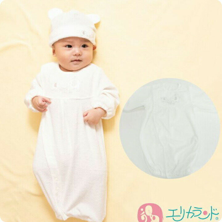 セレモニードレス ベビードレス 4点セット(ドレス・フード・スタイ・ミトン) オーガニックコンビ肌着 象刺繍コンビドレス 甘撚りふわふわ帽子 セット販売 出産祝い 退院祝い 贈り物 新生児 赤ちゃん 送料無料 ただし北海道・沖縄・離島は別途300円かかります。