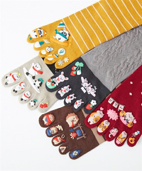 (23.0〜25.0cm) 指先まで楽しい 冬の動物柄 5本指 クルーソックス 5足組 ニッセン nissen ソックス 靴下 レディース かわいい 5足組 カラー 5足組 サイズ 23~25cm 素材 品質=綿・ポリエステル・ポリウレタン 柄が多少異なる場合があります。