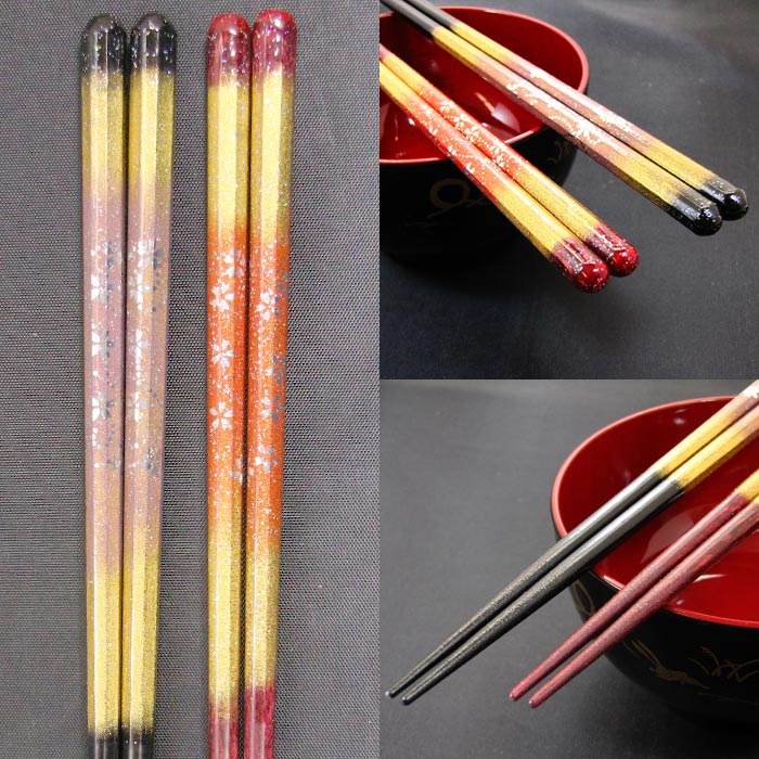 夫婦箸 桜組 赤 黒【木箱 入り】 桜 八角箸 縁起 名前入り 名入れ ギフト メッセージ 父 母 祖父 両親 祖父母 夫婦