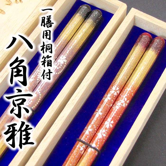 【送料無料/名入れ非対応】[食洗八角京雅] 一膳用桐箱入り 食器洗浄機対応/箸/出産祝い/誕生日/記念日/還暦祝い/長寿祝い/ギフト/プレゼント/贈り物/父の日/母の日/敬老の日/退職祝い/お土産 ペア カップル