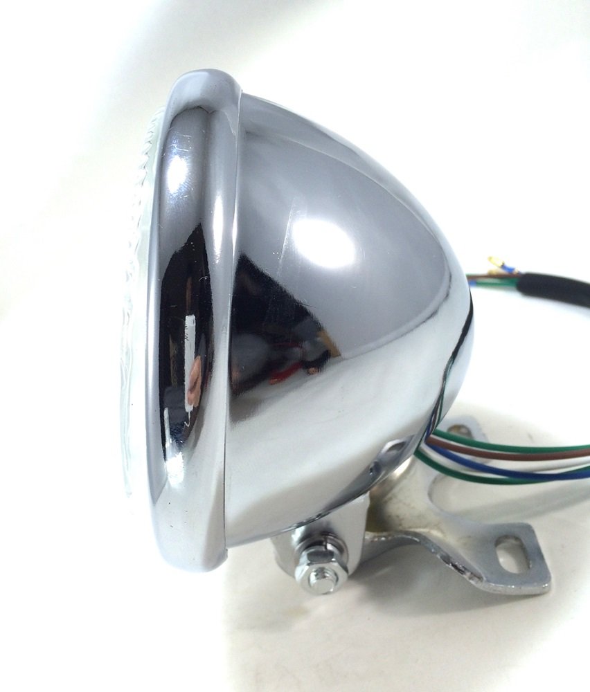 バイク 4.5インチ ベーツ ライト ヘッドライト クリアーレンズ メッキボディ タイプ ボトム マウント チョッパー カフェレーサー カスタム パーツ 汎用 ポジション カバー タンク サイド スタンド カウル ベルト ネジ キャリパー 固定 ケーブル スクーター キャブレター